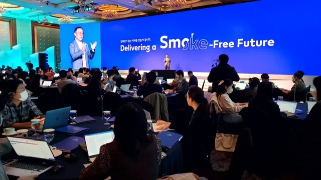 한국필립모리스의 신제품 아이코스 일루마 런칭시, “Smoke-Free Future” 비젼을 설명하는 장면