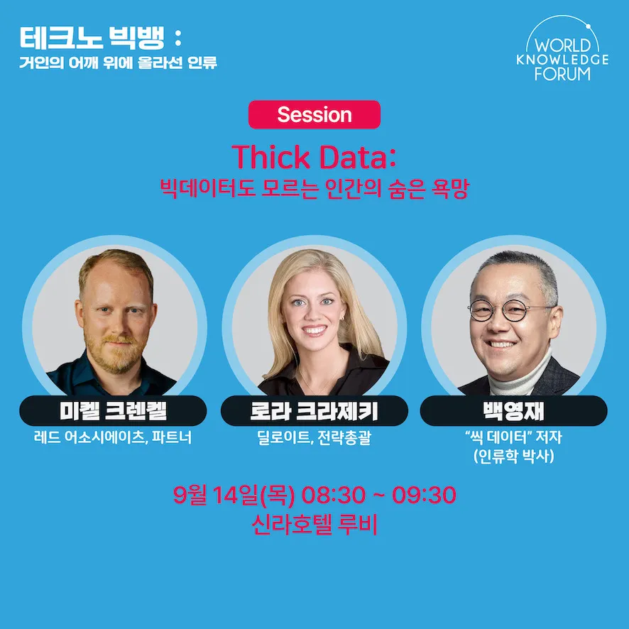이곳은 저자 백영재의 책 “THICK data (씩 데이터): 빅 데이터도 모르는 인간의 숨은 욕망”의 공식 홈페이지 입니다.